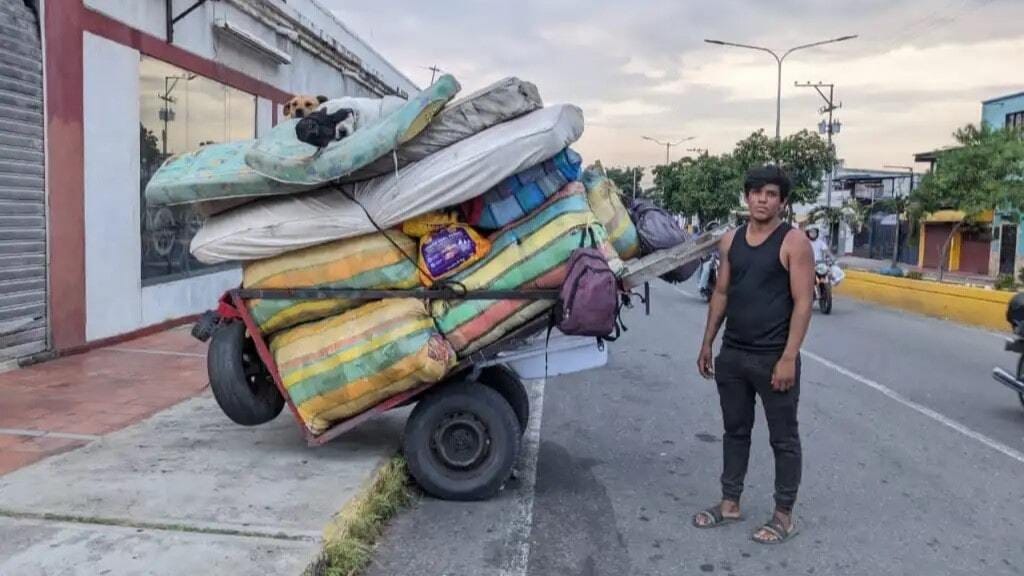 Kevin tomó su decisión personal: regresó a Venezuela después de seis años en Bogotá. Se trajo tres carretillas, ocho perros, un pollo… y seis familiares | Diario La Nación