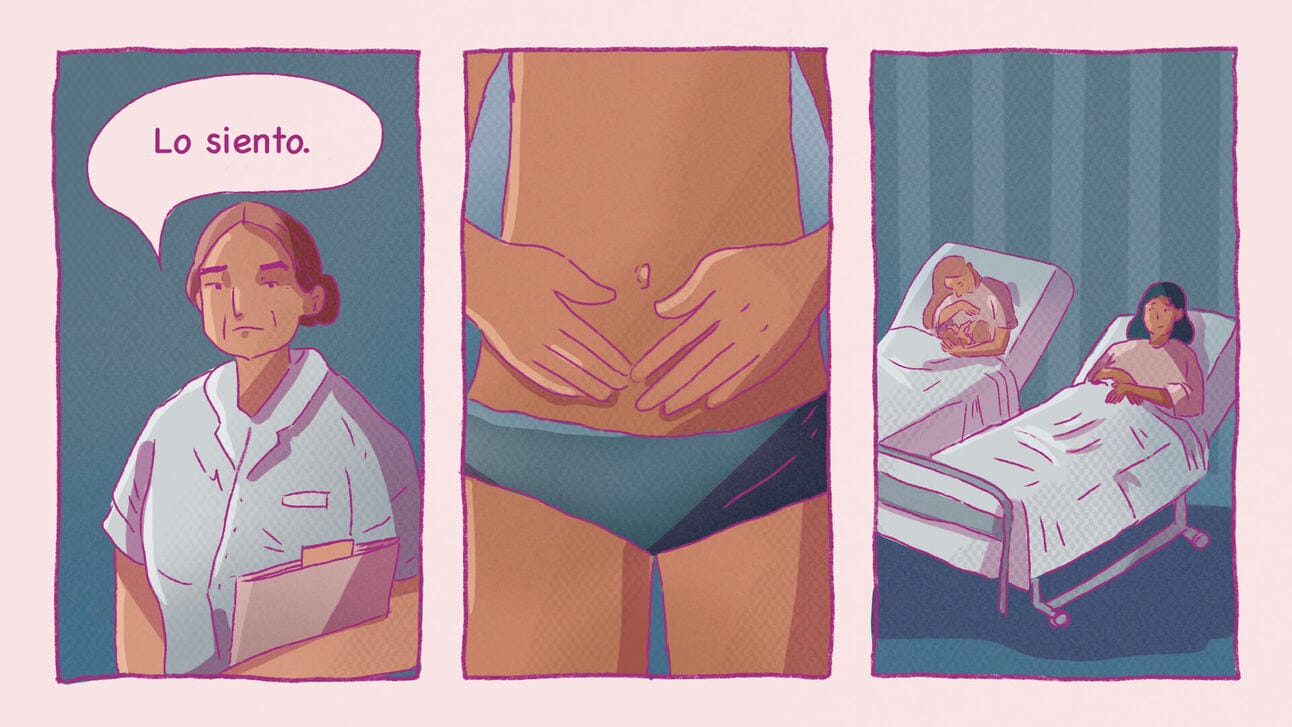 Aunque algunos países contemplan la atención del duelo gestacional, no hay registros que avalen su cumplimiento. OjoPúblico lo cuenta en este reportaje | Ilustración: Claudia Calderón