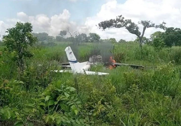 Un avión se cayó en La Paragua (Bolívar): el motor de la aeronave se apagó durante el vuelo. Aunque los pilotos (ambos a salvo) intentaron un aterrizaje de emergencia, la avioneta capotó y se incendió en un 80 % | Foto: Correo del Caroní