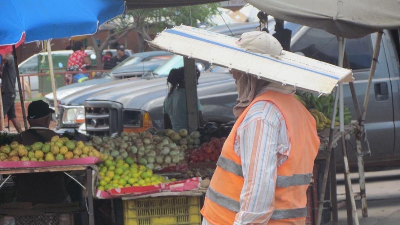 ☀️ Entre 5.000 y 7.000 trabajadores informales trabajan en el casco central de Maracaibo, donde la sensación de calor supera los 42 °C y no hay suficientes árboles para que hagan sombra. Para intentar protegerse de la pepa de sol durante las 12 horas (o más) de jornada, usan gorros, sombreros, chaquetas o camisas mangas largas, las cuales, en su mayoría, son de tela sintética y colores oscuros, que absorben más calor. También hacen techos improvisados con mallas de polisombra, bolsas negras o pedazos de cartón, pero no es suficiente. Lo poco que ganan no alcanza para comprar protector solar o lentes de sol. Ni los que cuidan los carros se salvan: el calor que emana del pavimento se calienta a más de 70 °C y les sancocha los pies, así tengan dos pares de medias.
