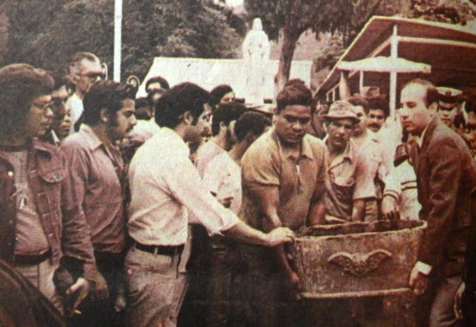 En 1975 abundaban melenas, patillas, bigotes y también mucha fe: hoy se cumplen 50 años de la primera vez que interrumpieron el descanso de los restos de San José Gregorio (lo llevaron del Cementerio General del Sur de Caracas a La Candelaria). Comparte esta memoria que nos une en tu WhatsApp y colabora con una iniciativa contra la censura (esta Arepita)