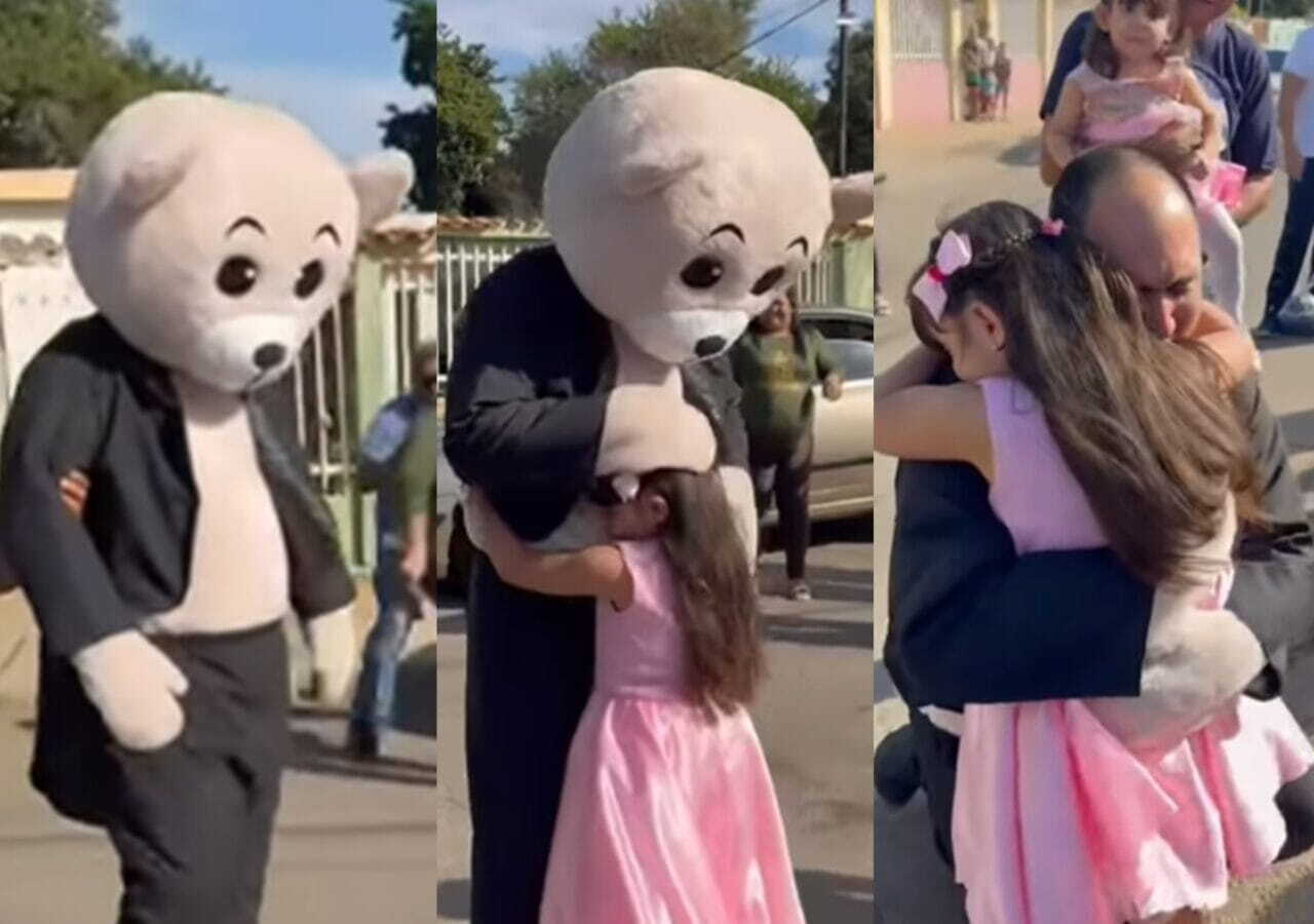 ¿Cómo se siente estar metido dentro de un disfraz de peluche en Maracaibo? No hay calor que sufra el ex preso político Víctor Borjas al disfrazarse para sorprender a sus hijas tras salir de la cárcel. Lo arrestaron el 9 de enero de 2025 mientras participaba en una protesta en apoyo al presidente electo Edmundo González… Se nos metió un oso en el ojo 💕.