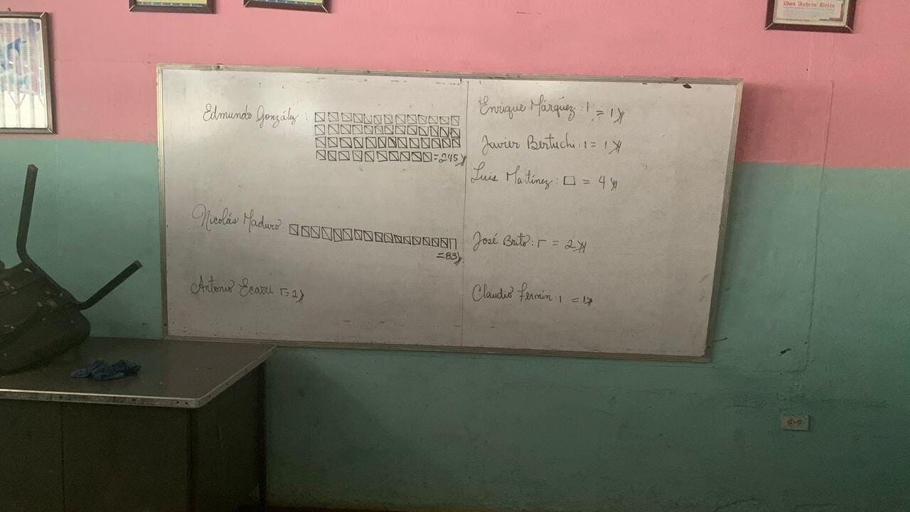 Las clases comienzan el #30Sep, algunos maestros se reincorporaron a las escuelas y en al menos esta de Guanare —según Gangi—no borraron el pizarrón: palito, palito, palito, Edmundo ganó. Lo pasó: Ana Julia Jatar