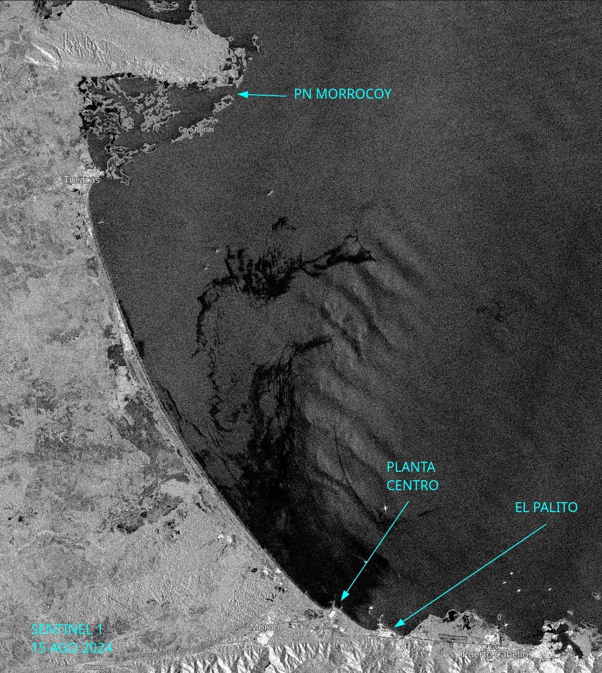El derrame de petróleo del 15 de agosto en el Golfo Triste (Falcón) dejó una mancha del tamaño de 35 mil campos de fútbol (225 km²) | Foto: Eduardo Klein