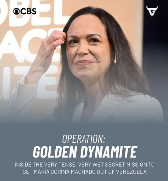 Desde que nos separamos (jueves 11) pasó esto, y no podíamos resistir las ganas de incluirlo: apareció una gente en EEUU que dice haber sacado a María Corina por mar de Venezuela. El nombre de la supuesta operación suena a producto de tienda erótica (Dinamita Dorada) y bueno, los detalles que cuentan dan para una letra de salsa: «Ella también estaba fría y mojada». Si aquello presuntamente era una «misión secreta», pues no aguantaron ni dos pedidas para echar el chisme. El equipo de la Premio Nobel de la Paz, por ahora, desmiente todo. Veremos. Mientras, comparte por WhatsApp